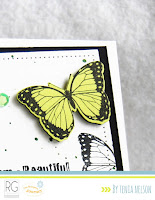 6. Stamp, die cut and adhere green butterfly onto image panel panel.